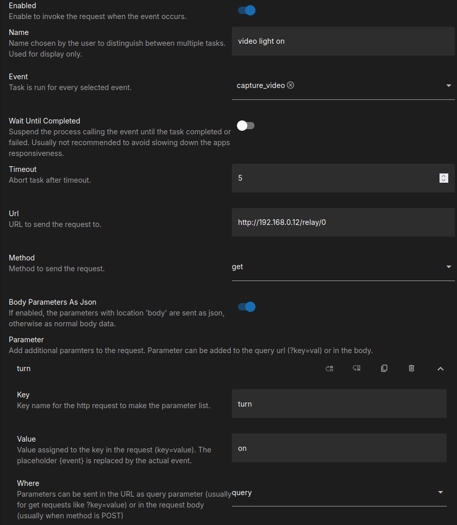 The configuration is highly specific to your individual setup. Following is an example for a Shelly device accessible via HTTP.